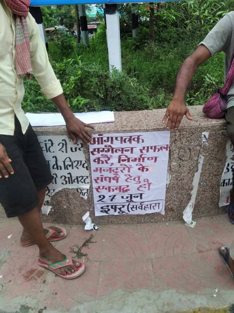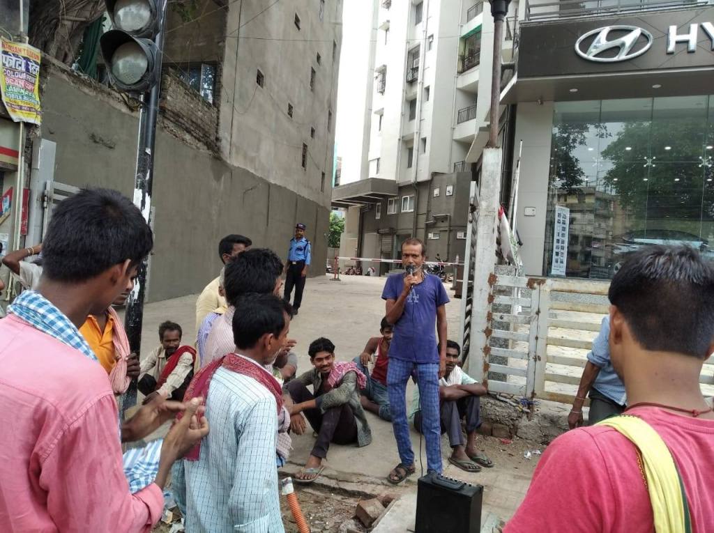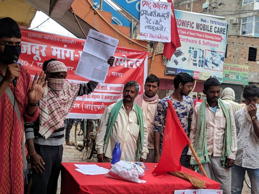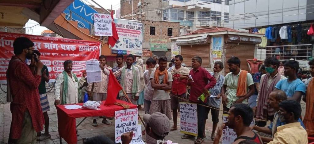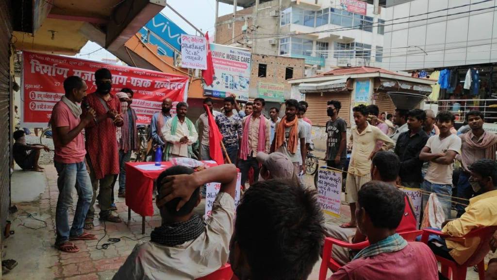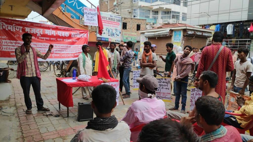 27 जून ’20 को सुबह 7 बजे से पटना बाईपास स्थित रामकृष्णा नगर में न्यूनतम मजदूरी मिलने, ओवरटाइम के लिए दोगुनी रेट लागू कराने, आदि मांगों को ले कर ‘निर्माण मजदूर मांग-पत्रक सम्मलेन’ आयोजित किया गया।इस सम्मलेन में पटना के कई मजदूर चौकों, मुख्यतः मलाही पकड़ी, मुन्ना चौंक, राजेन्द्र नगर, नाला रोड, सिपारा, भट्टाचार्य मोड़, आदि से लगभग 300 मजदूर शामिल हुए। सभा का संचालन मजदूरों के बीच से ही मनोज कुमार और अनिल कुमार द्वारा किया गया।