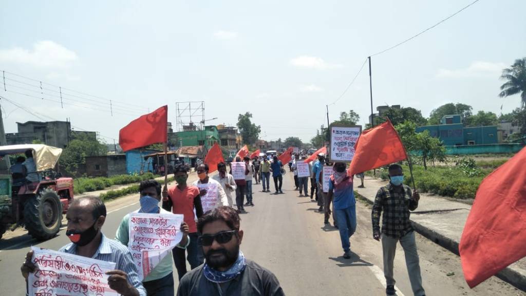 #All_India_Protest_Demonstration 3 July 2020 Paschim Bardhaman, West Bengal Raise your voice against the dangerous attack of the capitalist class and the government on the working class in pretext of corona crisis and the insensitivity of the government towards the crisis of life and livelihood of the working masses!Transform the protests into protracted, militant and decisive struggle of working class!