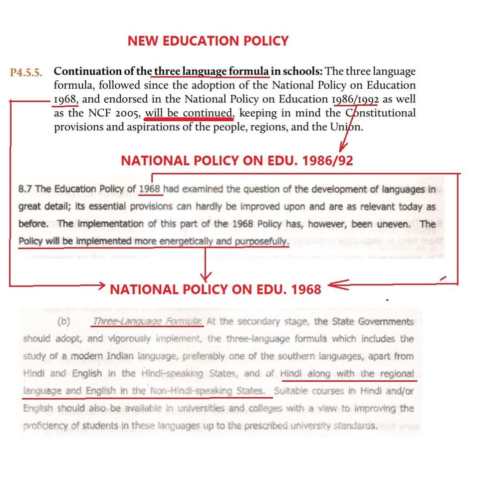 The NEP talks of continuing the controversial Three-Language Formula which was first mentioned in the NPE 1968 and was heavily encouraged even in the NPE 1986/1992. According to the formula, while the study of Hindi and English would be mandatory in all states, the Hindi-speaking states would include the study of a modern Indian language, preferably one of the southern languages, and the non-Hindi states would include the study of the regional language. This clearly enables Hindi to be given an advantage over other non-English languages. Given the RSS-BJP’s outlook of seeing Hindi (and Sanskrit) as a superior language and the principal language for Hindu Rashtra, the NEP through the Three-Language Formula dangerously provides ammunition for the imposition of Hindi throughout the country. (para 4.13)