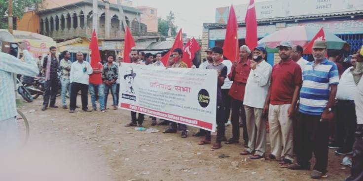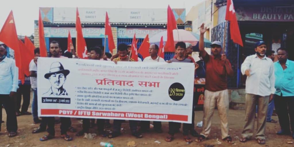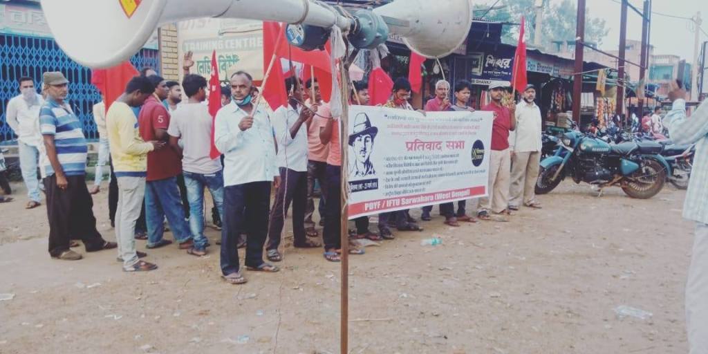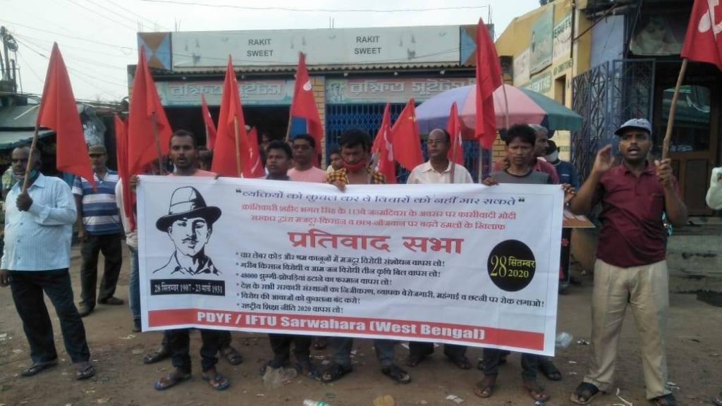 Protest demonstration organized on the occassion of Bhagat Singh’s birthday, against anti-people and fascist policies of the government, that is, 4 labour codes to replace 44 labour laws, National Education Policy 2020, 3 pro-corporate farmer bills, rampamt privatization, unprecedented repression on democratic voices among others.