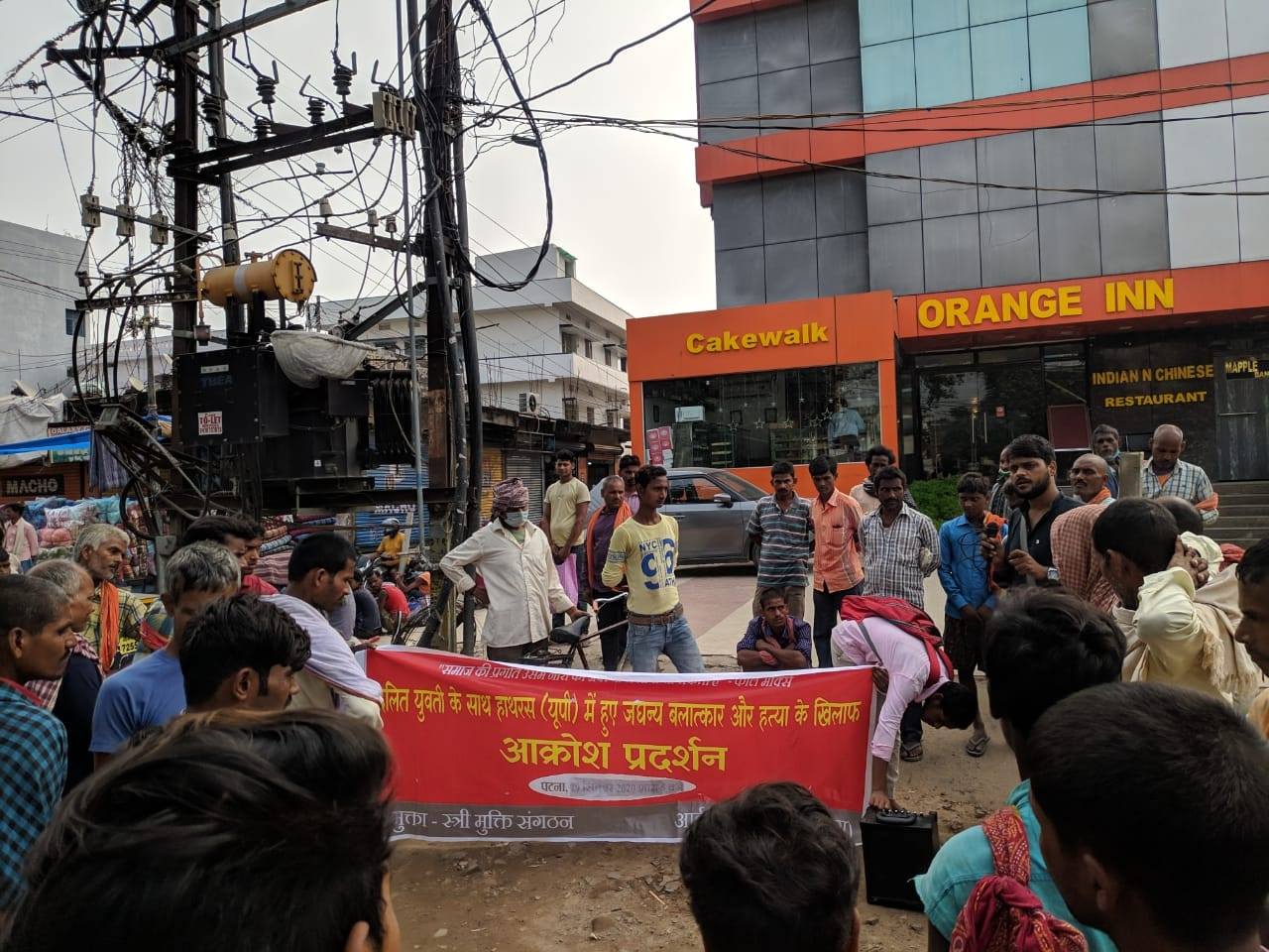 Patna, October 2020: Against the inhuman gangrape and killing of a Dalit teenager in Hathras (UP) and rising violence and crimes against women, protest meetings and marches organized at various labour chowks in Patna in the first week of October by IFTU (Sarwahara) and Vimukta – Stree Mukti Sangathan.