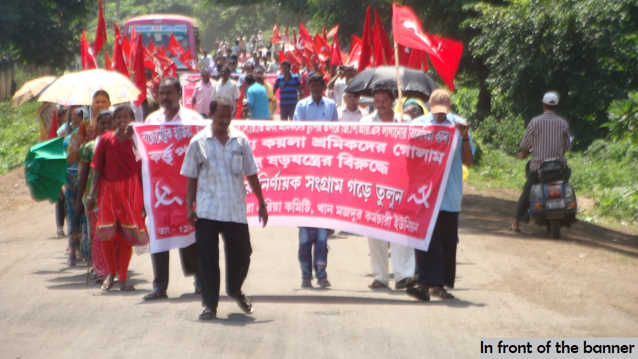 Comrade MP Chouhan was involved in numerous workers’ movements and struggles since the past two and a half decades, but since he was one of our leading comrades who worked laboriously in the background, there aren’t many pictures where he can be clearly seen. When there was heavy oppression in Jhanjra and building up a union meant facing life-threatening attacks, he has been one of our leading fighters since then. While working as a regular permanent worker in ECL, MP Chouhan and other comrades like him were those who fought even if it meant putting their lives at risk. Even then there is a lack of such pictures in which he can be seen in the front. Still, given below are some pictures of him that we have managed to find.