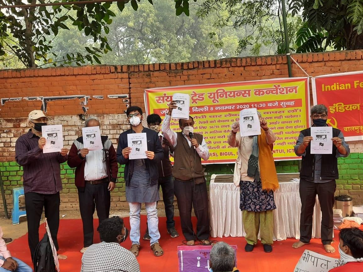 Jantar Mantar, Delhi / 8 Nov 2020 : Joint Trade Unions Convention organized by 9 federations and workers orgs. in which support was extended to the 26 Nov general strike call by National Platform of Central Trade Unions with a Charter of Demands which was passed in the Convention.