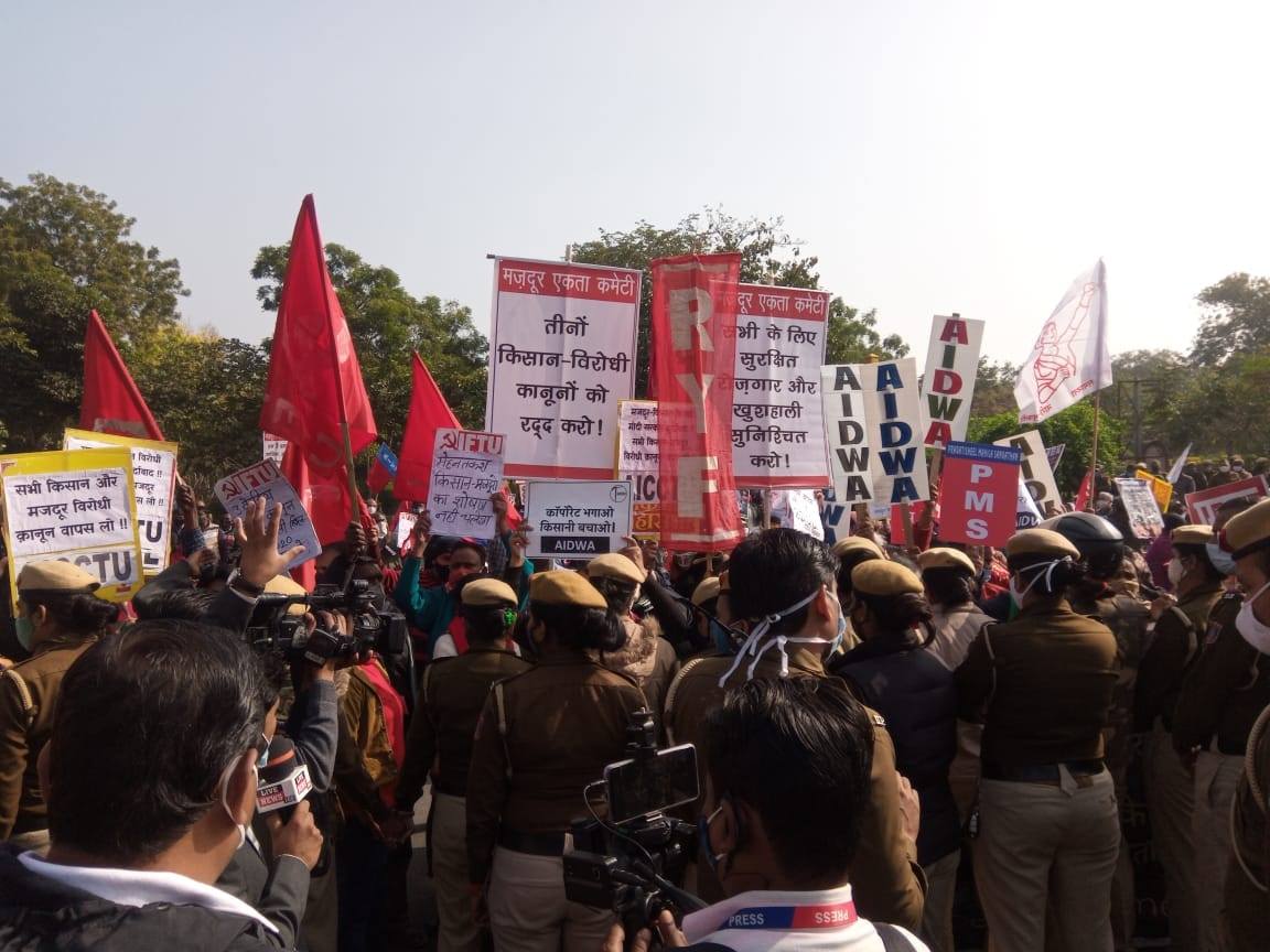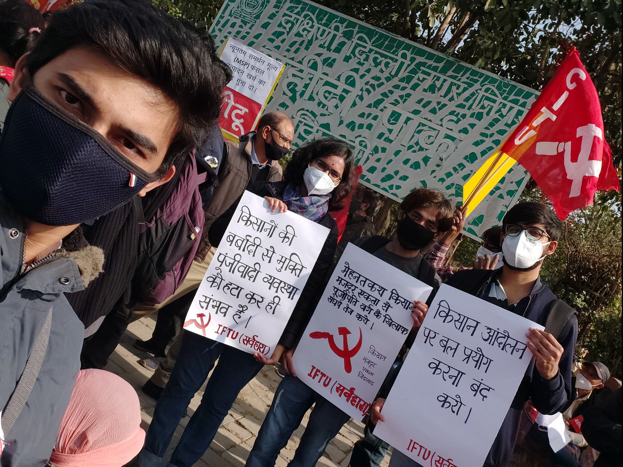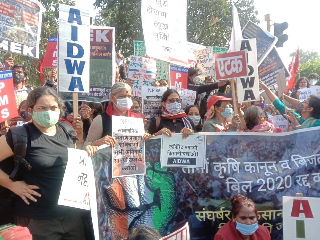 Protest demonstration organized at Shahidi Park (ITO) in support of struggling farmers against the three pro-corporate farm laws, by trade unions, students-youth orgs, women orgs and other left-democratic orgs under the banner of #DelhiForFarmers