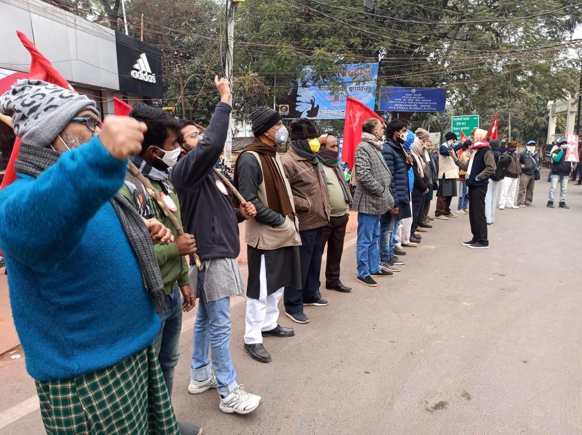 On the call of Mahagathbandhan parties, human chain was set up throughout Bihar from 12:30 pm to 1 pm, in which Sarwahara Jan Morcha also participated near Radio Station, Patna.