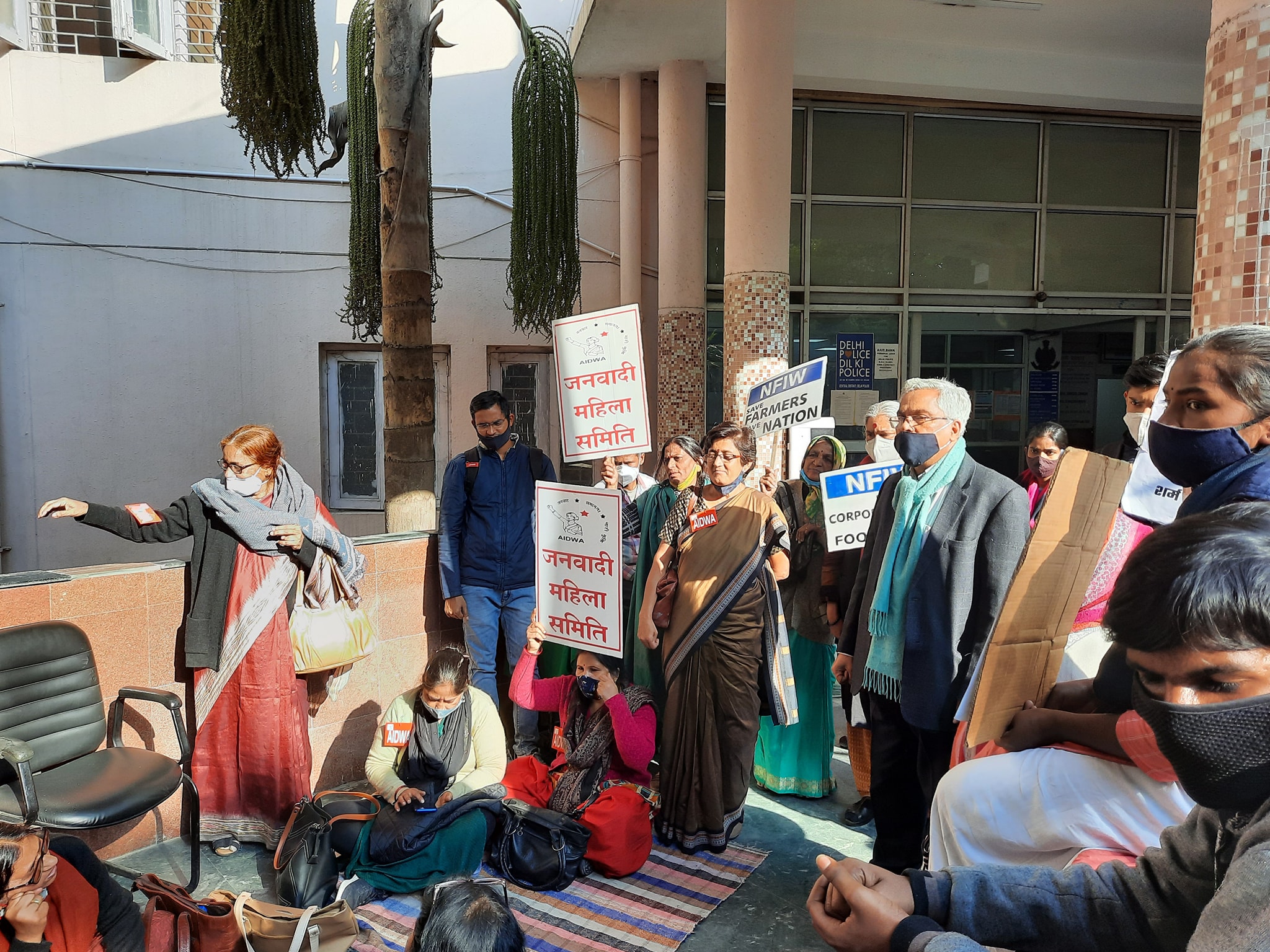The protesters started their demonstration in the premises of the police station itself in which sloganeering was done against the anti-democratic character of the Government and its police, as well as in solidarity with the farmers protest. Revolutionary songs were also sung. Around 5 pm, the protesters were finally released.