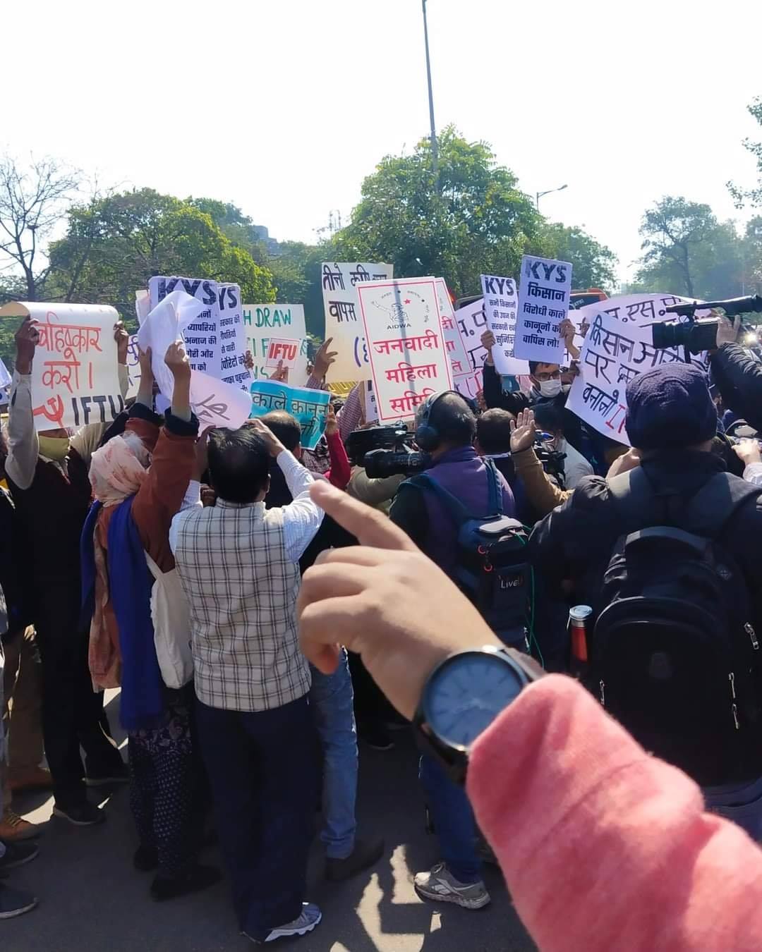 Even though police intimation had already been given, the police forcibly detained the protesters, numbered around 200 at that time, as soon as they assembled at Shaheedi Park, who were then taken to the Rajinder Nagar Police Station in buses.