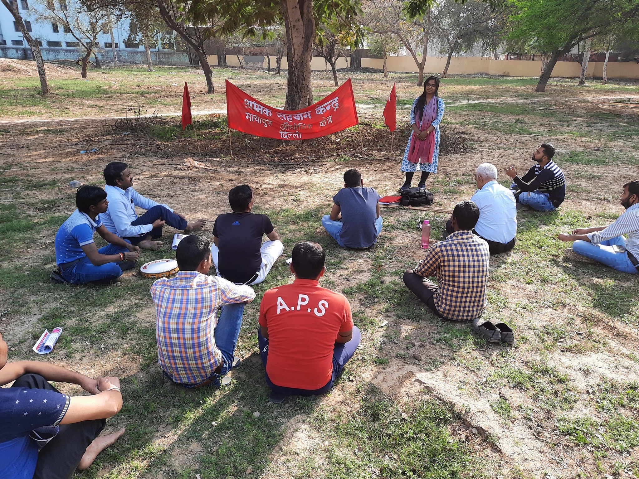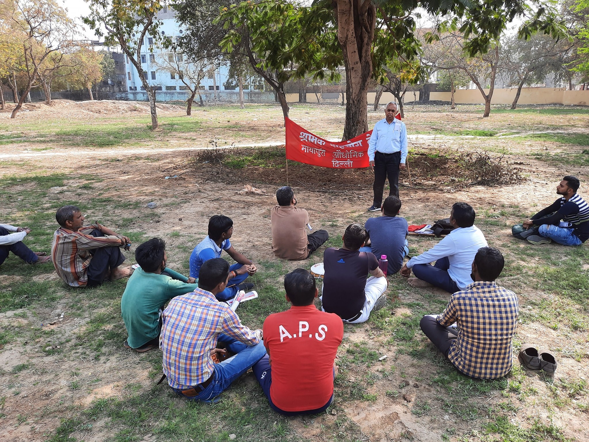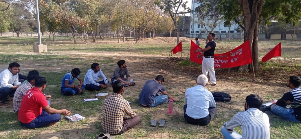 Delhi / 28 Feb 2021: Today, a workers conference was successfully held in Mayapuri Industrial Area’s District Park for the formation and formal decalaration of the Mayapuri chapter of Shramik Sahyog Kendra.A 12-member committee was formed through consensus and the resolution to establish a genuine and fighting workers organization and to immediately initiate work on various issues related to labour rights and the jhuggi-basti was passed.Resolutions against the 4 anti-worker labour codes meant to destroy all hard earned rights of workers and the 3 anti-farmer laws meant to evict farmers from agriculture and hand it to corporates were also passed. There was also consensus on the dire need to strengthen the struggle for the overthrow of the capitalist system based on workers’ exploitation and inequality and pave the path for a better, exploitation-free society in leadership of the working class.Worker comrades Ramdayal and Vindvyas addressed the conference on behalf of the newly formed SSK Committee. ‘Sarwahara’, IFTU (S)’s fortnightly bulletin, was also inaugrated and there was consensus on its distribution in Mayapuri. Along with this, two of the invited comrades, Satya Veer Singh (editorial board member of The Truth / Yatharth) and Ashu (Vimukta / विमुक्ता – स्त्री मुक्ति संगठन) addressed the conference with their valuable views. A written message sent by comrade Kanhai Baranwal (IFTUS GS) wishing the conference’s success and extending revolutionary greetings to SSK was read aloud and was warmly received in the conference.Comrades Vind Vyas and Ashu presented revolutionary working-class songs and the conference was concluded with energetic sloganeering of Inquilab Zindabad! Mazdoor Ekta Zindabad! Punjiwaad-Faasiwaad Ho Barbaad!