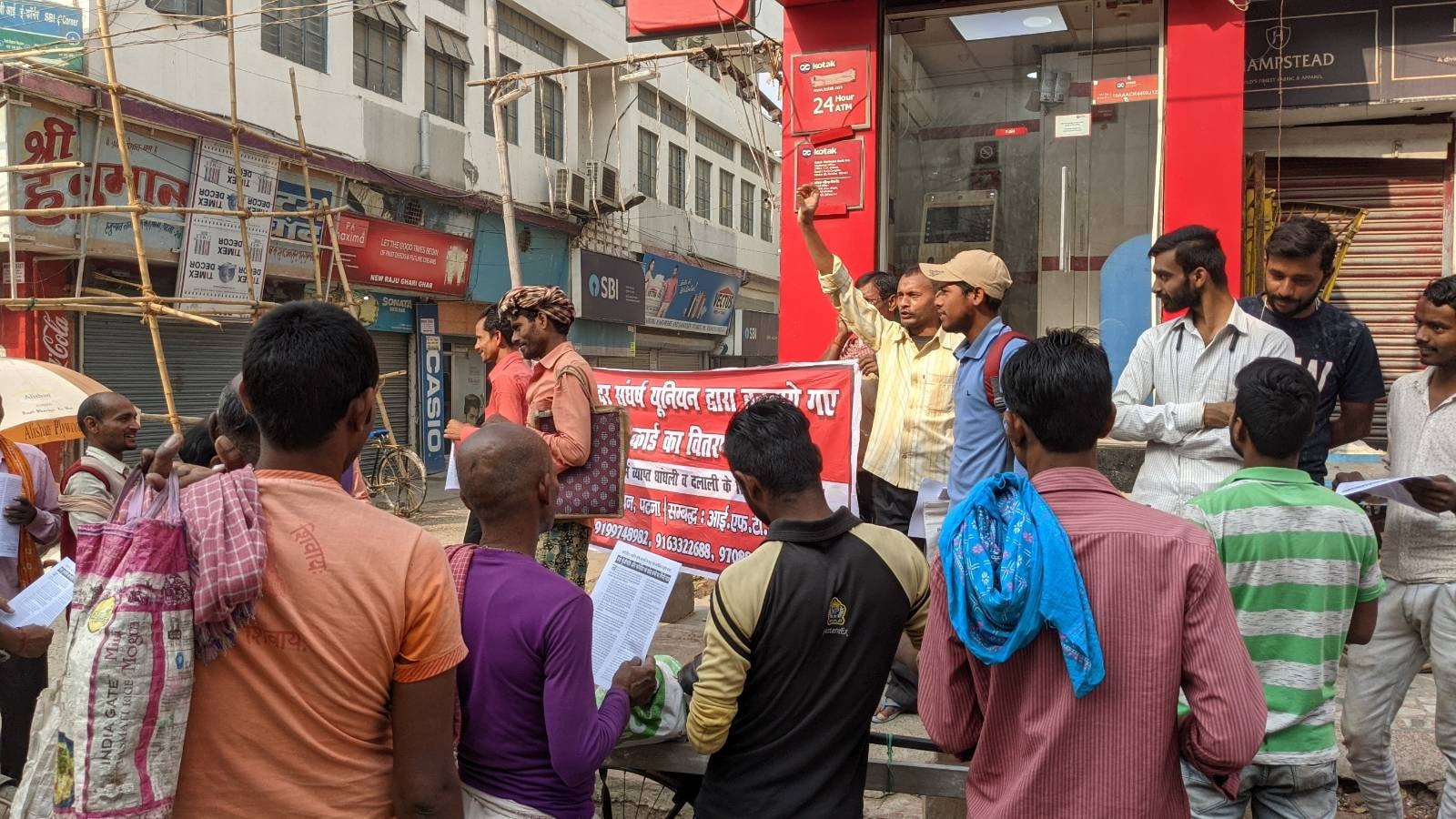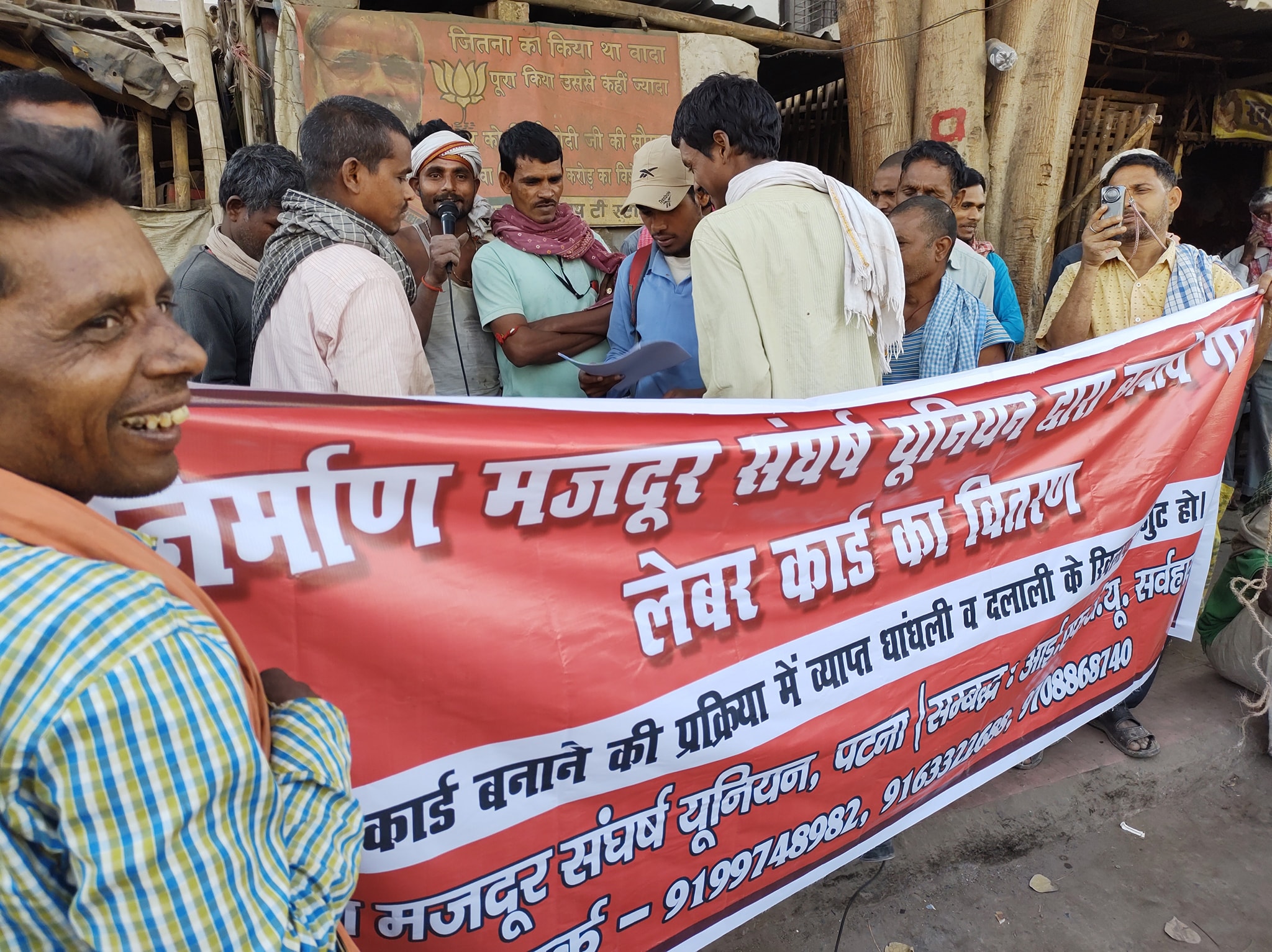 After a long struggle against corruption and bureaucratic delays ingrained in the labour card process, IFTUS affiliated ‘Nirman Mazdoor Sangharsh Union’ succeeded in creation of labour cards for hundreds of our workers as per the rules without a single penny being taken as commission or bribe. The newly issued labour cards were distributed among workers at various labour chowks.