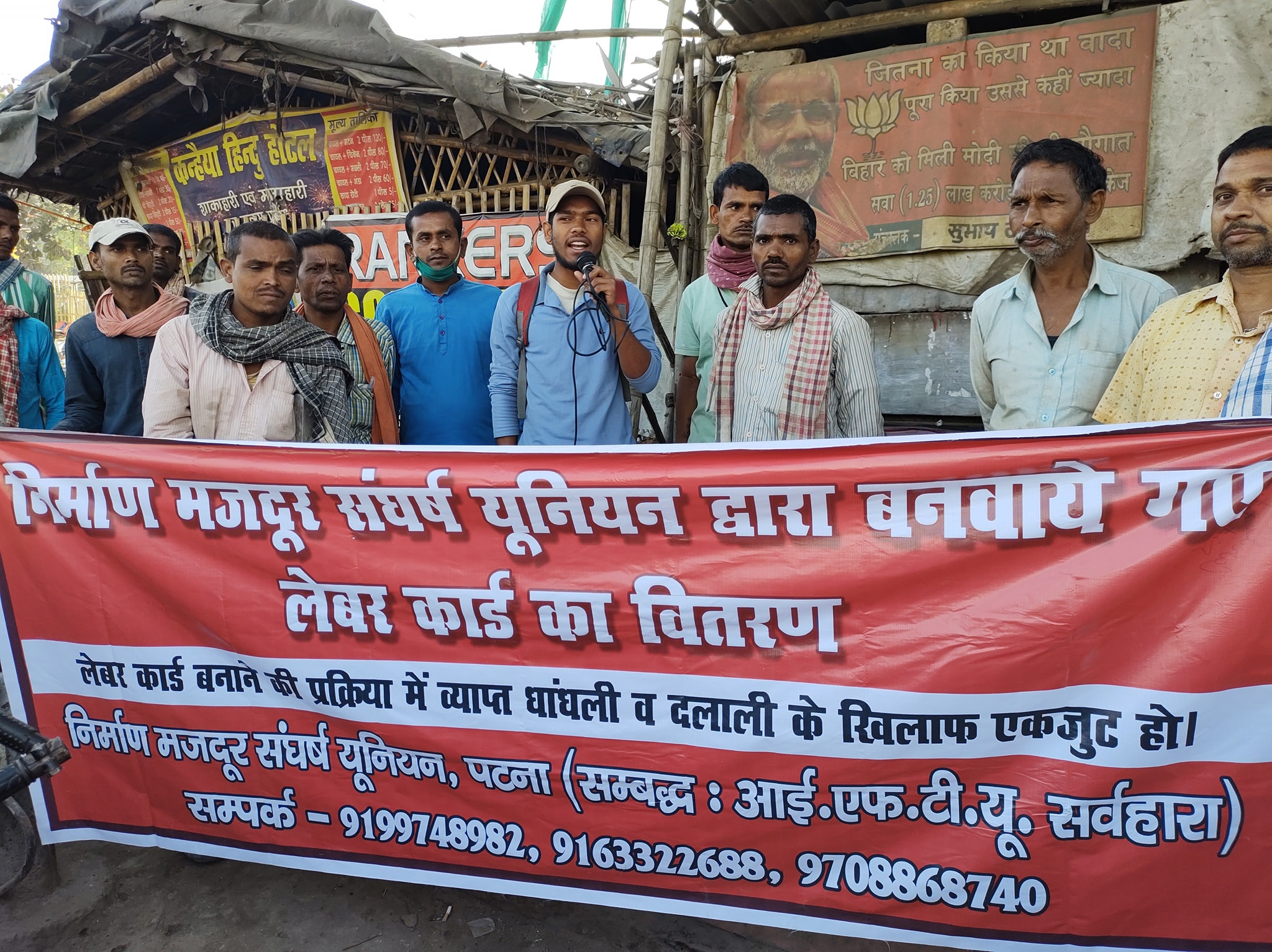बहुत जद्दोजहद से लेबर कार्ड बनाने में दलाली तथा व्याप्त धांधली से लड़ते हुए इफ्टू (सर्वहारा) से सम्बद्ध निर्माण मजदूर संघर्ष यूनियन (सम्बद्ध : इफ्टू सर्वहारा) को मज़दूरों के सैंकड़ो लेबर कार्ड पूरी तरह नियमानुसार बनवाने में सफलता मिली है जिसमें एक रुपया भी दलाली और घूस के रूप में अतिरिक्त रूप से खर्च नहीं होने दिया गया। इन बन चुके लेबर कार्ड का वितरण मजदूरों के बीच विभिन्न लेबर चौकों पर किया गया।