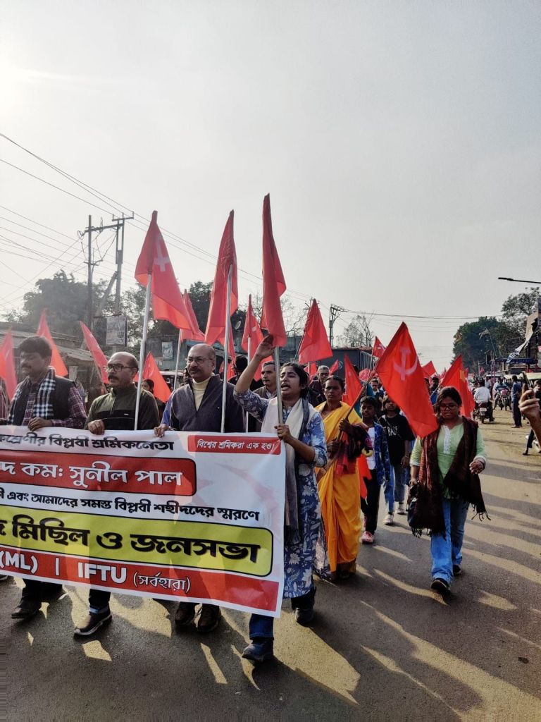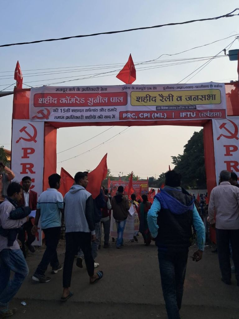 मजदूर वर्ग के क्रांतिकारी नेता कामरेड सुनील पाल की 15वीं शहादत वर्षगांठ पर पीआरसी सीपीआई (एमएल) और आईएफटीयू (सर्वहारा) ने संयुक्त रूप से पश्चिम बंगाल के पश्चिम बर्धमान जिले के हरिपुर इलाके में 29 दिसंबर को एक शहीद रैली और जन सभा का आयोजन किया। यह वही जगह है जहां डेढ़ दशक पहले कामरेड पाल की हत्या की गई थी। यह रैली मजदूर वर्ग की मुक्ति के संघर्ष में अपने प्राणों की आहुति देने वाले सभी क्रांतिकारी शहीदों की याद में आयोजित की गई थी।