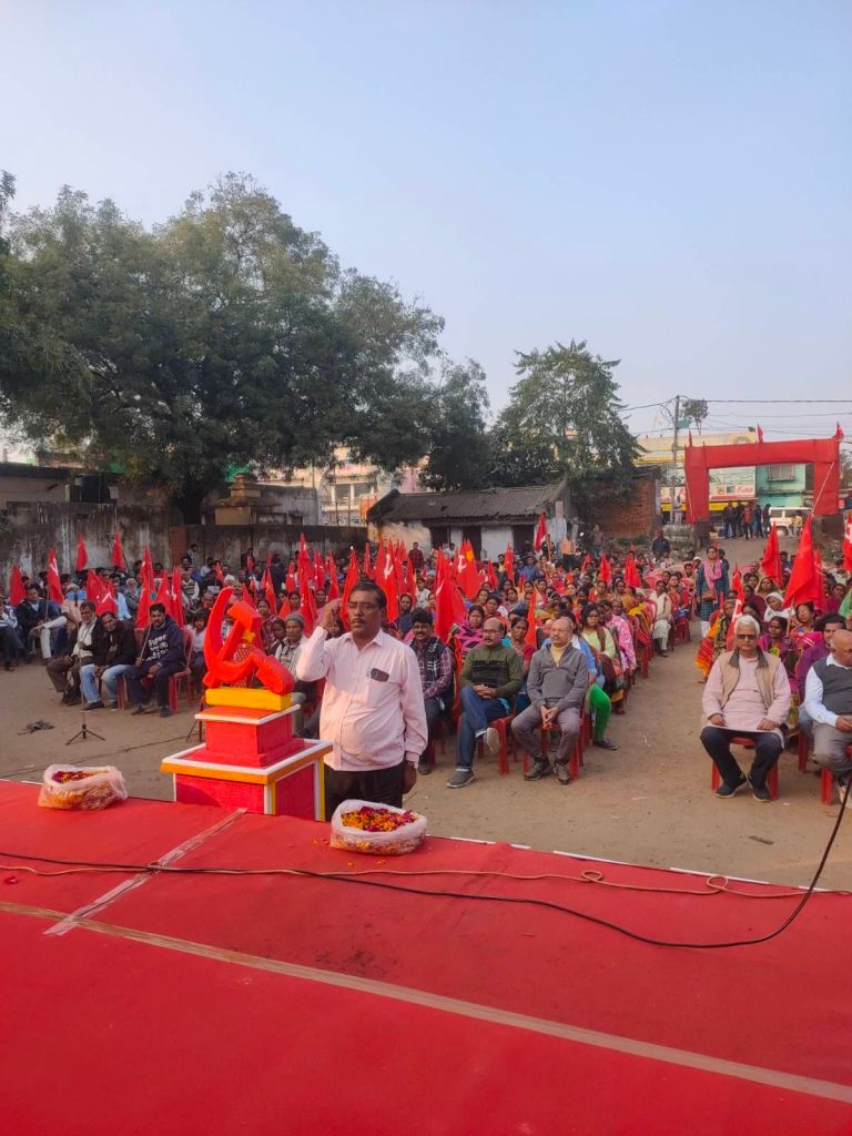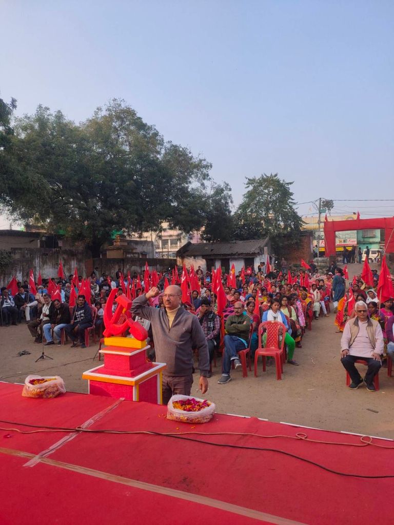 कॉमरेड कन्हाई बरनवाल द्वारा संचालित इस जन सभा को निम्नलिखित वक्ताओं ने संबोधित किया: अजय सिन्हा (महासचिव, पीआरसी सीपीआई एमएल), संजीत अधिकारी (पीआरसी बंगाल), राधे (पीआरसी बिहार), सिद्धांत (पीआरसी दिल्ली), साथ ही बिरादराना संगठनों के प्रतिनिधियों में से कामरेड मुकेश असीम (सर्वहारा जनमोर्चा), श्यामवीर (इंकलाबी मजदूर केंद्र), अवाश मुंशी (मजदूर क्रांति परिषद), अशोक बैठा (सीपीआई एमएल), शंकर (सीपीआई एमएल रेड स्टार), भोलानाथ सीट (सीपीआई एमएल मास लाइन), कीर्तन कटाल (सीपीआई एमएल न्यू डेमोक्रेसी), सोमेंदु गांगुली (लाल झंडा मजदूर यूनियन समन्वय समिति), आरपी सिंह (मंथन पत्रिका), सागर (सीसीएसएस), भारत (मजदूर सहायता समिति), अरुण मुखर्जी (सीपीआई एमएल)। बैठक में पीसीसी सीपीआई एमएल, ईसीएल ठेका श्रमिक अधिकार यूनियन, खान मजदूर कर्मचारी यूनियन और एनटीयूआई के साथी भी मौजूद थे। पश्चिम बंगाल की सांस्कृतिक टीम ‘अरुणोदय’ द्वारा हिंदी और बंगला में क्रांतिकारी गीत – “लाल लाल झंडा है” और “एमोन देशे जनम मोदेर” प्रस्तुत किए गए।