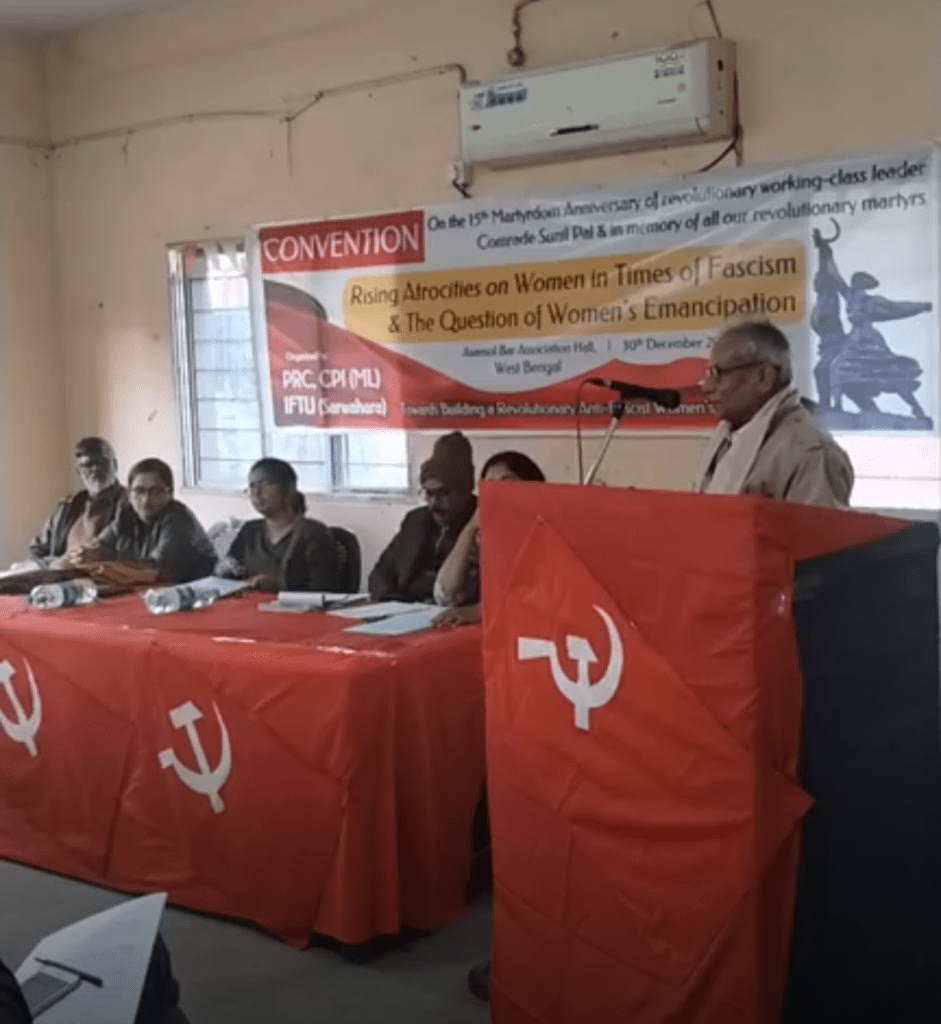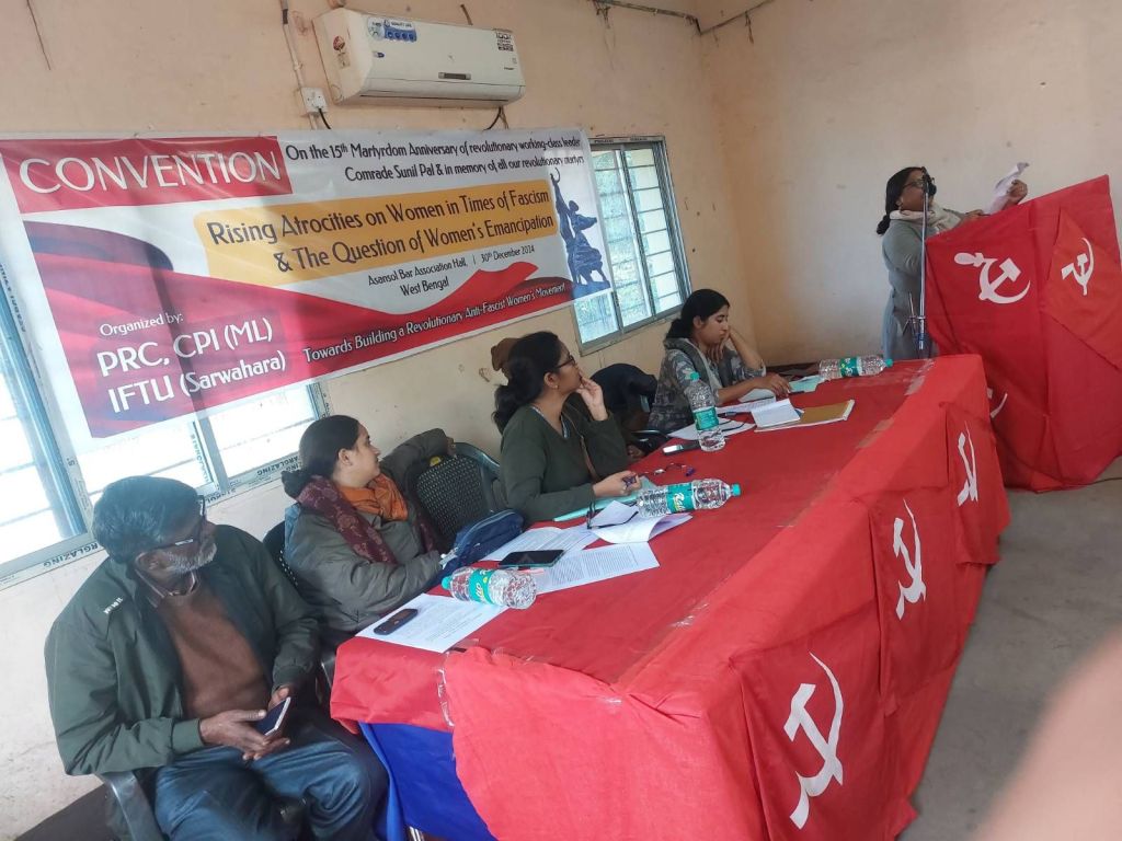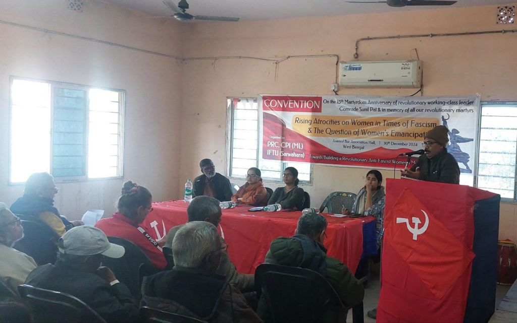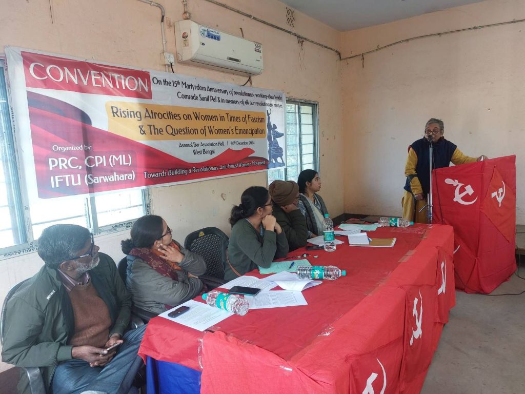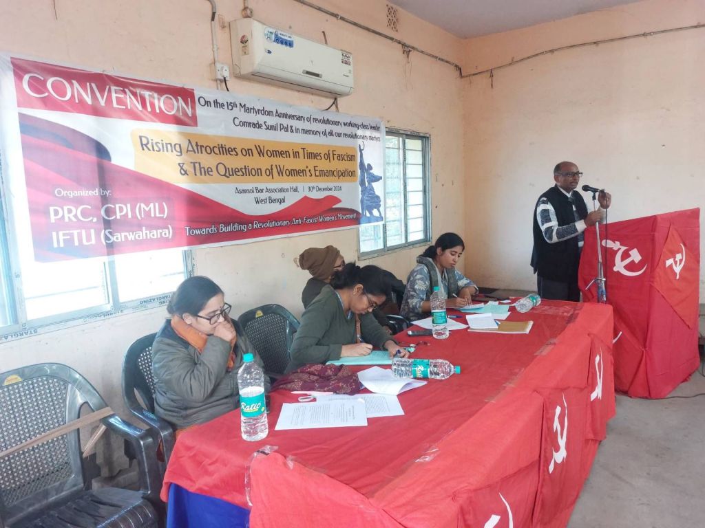 मजदूर नेता के क्रांतिकारी नेता कॉमरेड सुनील पाल की 15वीं शहादत वर्षगांठ के अवसर पर पीआरसी, सीपीआई (एमएल) और आईएफटीयू (सर्वहारा) द्वारा पश्चिम बंगाल के पश्चिम बर्धमान जिले के आसनसोल बार एसोसिएशन हॉल में 30 दिसंबर 2024 को “फासीवादी दौर में महिलाओं पर बढ़ता उत्पीड़न और महिला मुक्ति का प्रश्न” विषय पर एक कन्वेंशन का आयोजन किया गया।