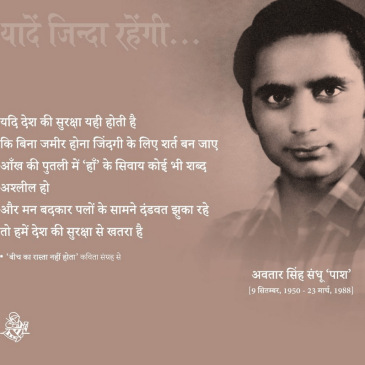 अवतार सिंह ‘पाश’ | ‘सर्वहारा’ #58 (1 सितंबर 2024) यदि देश की सुरक्षा यही होती हैकि बिना ज़मीर होना जिंदगी के लिए शर्त बन जाएआंख की पुतली में ‘हां’ के सिवाय कोई भी शब्दअश्लील होऔर मन बदकार पलों के सामने दंडवत झुका रहेतो हमें देश की सुरक्षा से खतरा है हम तो देश को समझे … More अपनी असुरक्षा से (पाश की कविता)